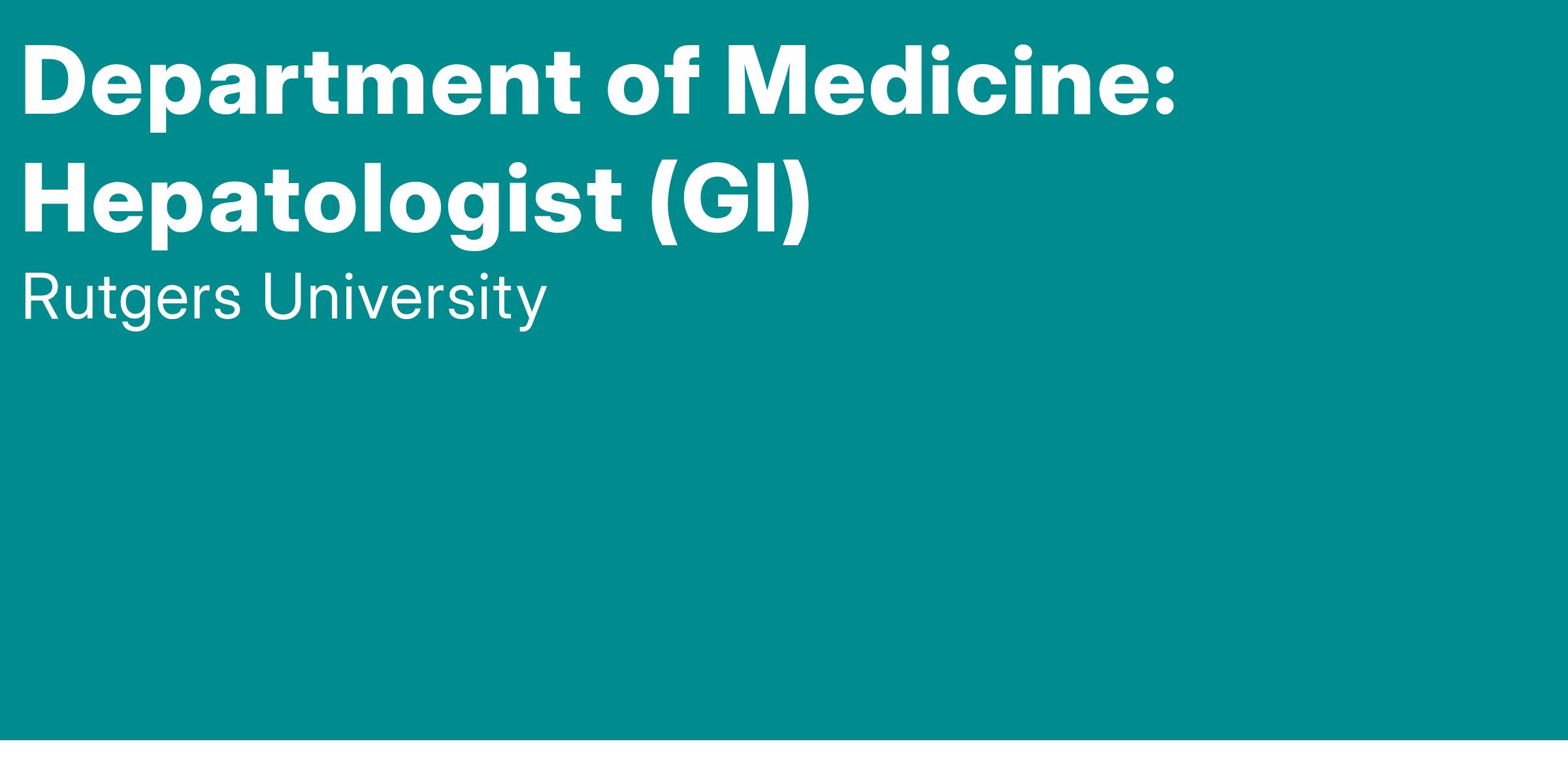 The Division of Gastroenterology and Hepatology, Rutgers Robert Wood Johnson Medical School seeks to employ a Hepatologist at an open rank. This position offers a dynamic opportunity to provide high-quality patient care, engage in academic and scholarly activities, and contribute to the advancement of hepatology and gastroenterology services and treatments at Robert Wood Johnson University Hospital at New Brunswick. The faculty member will work directly with patients to best understand their needs in order to test, diagnose and treat patients as required, as well as work with patients’ primary physicians and other relevant physicians to arrive at a workable medical strategy for their concerns. Some duties may include: comprehensive inpatient/outpatient care for patients with liver-related disorders and general gastroenterology conditions, participate in providing endoscopic procedures, educate and mentor medical students, residents, and fellows, and other duties as assigned. Robert Wood Johnson University Hospital at New Brunswick is part of the RWJBarnabas Health System. The affiliation of Rutgers Health and RWJ /Barnabas Health, the largest health system in NJ, presents exciting opportunities for growth and expansion of the gastroenterology and hepatology program. The integrated health system (RWJBarnabas) is a $5 billion enterprise and cares for about 40% of all NJ residents.