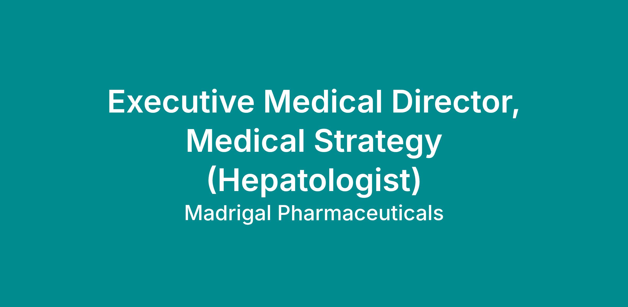 The Executive Medical Director, Medical Strategy (hepatologist), is a key member of the Medical Affairs global team and serves as Madrigal’s clinical and medical expert in Metabolic Dysfunction–Associated Steatohepatitis (MASH). This hepatology/liver expert will bring deep clinical and industry expertise to guide strategic direction and serve as a trusted advisor across the organization.