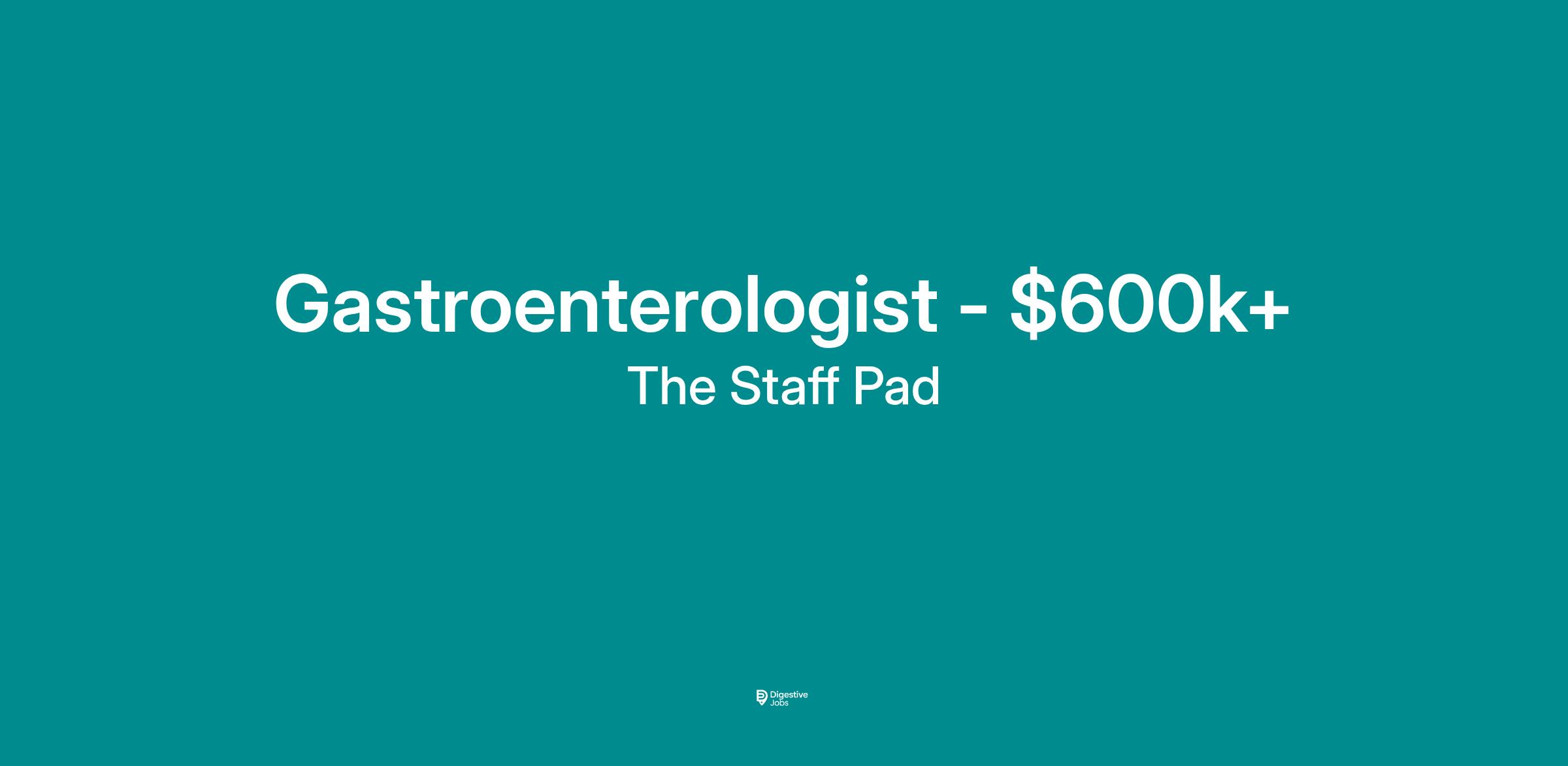 Gastroenterologist<\/b><\/span><\/span> Location:<\/b> Casper, WY<\/span><\/span> The Staff Pad has partnered with a physician -led, private equity–backed gastroenterology group to hire Gastroenterologists in Casper, Wyoming.<\/b> This established practice offers both hospitalist <\/b>and clinic/ASC<\/b> opportunities with flexible scheduling and exceptional earning potential. This is an excellent opportunity to join a growing GI platform with strong operational support, a collaborative physician culture, and access to a wholly owned ambulatory surgery center.<\/span> Hospitalist and outpatient/ASC roles available<\/span> Flexible scheduling (7 on / 7 off preferred for hospitalist roles)<\/span> Bread -and -butter gastroenterology; ERCP welcomed<\/span> Wholly owned ASC plus hospital coverage<\/span> Dedicated Medical Assistant support<\/span> Limited travel to satellite clinics (minimal overnight travel)<\/span> Clinic: 1 day or 2 half -days per week<\/span> ASC: 2–3 days per week<\/span> Admin time available (remote -capable)<\/span> Call schedule 1:4<\/span> Base salary $600,000–$700,000/yr<\/b> Annual signing/retention bonuses up to $50,000<\/b> Productivity -based compensation (50% of collections above base)<\/span> Income potential $650K–$1M+<\/b> Full benefits, malpractice coverage, and 401(k) with employer contribution<\/span> Paid time off, CME allowance, and relocation assistance<\/span> Day 1 partnership opportunity with equity upside<\/b> Board Certified or Board Eligible in Gastroenterology<\/span> Eligible for Wyoming medical licensure<\/span> Open to new graduates and experienced physicians<\/span> J -1 Visa candidates encouraged to apply<\/b>