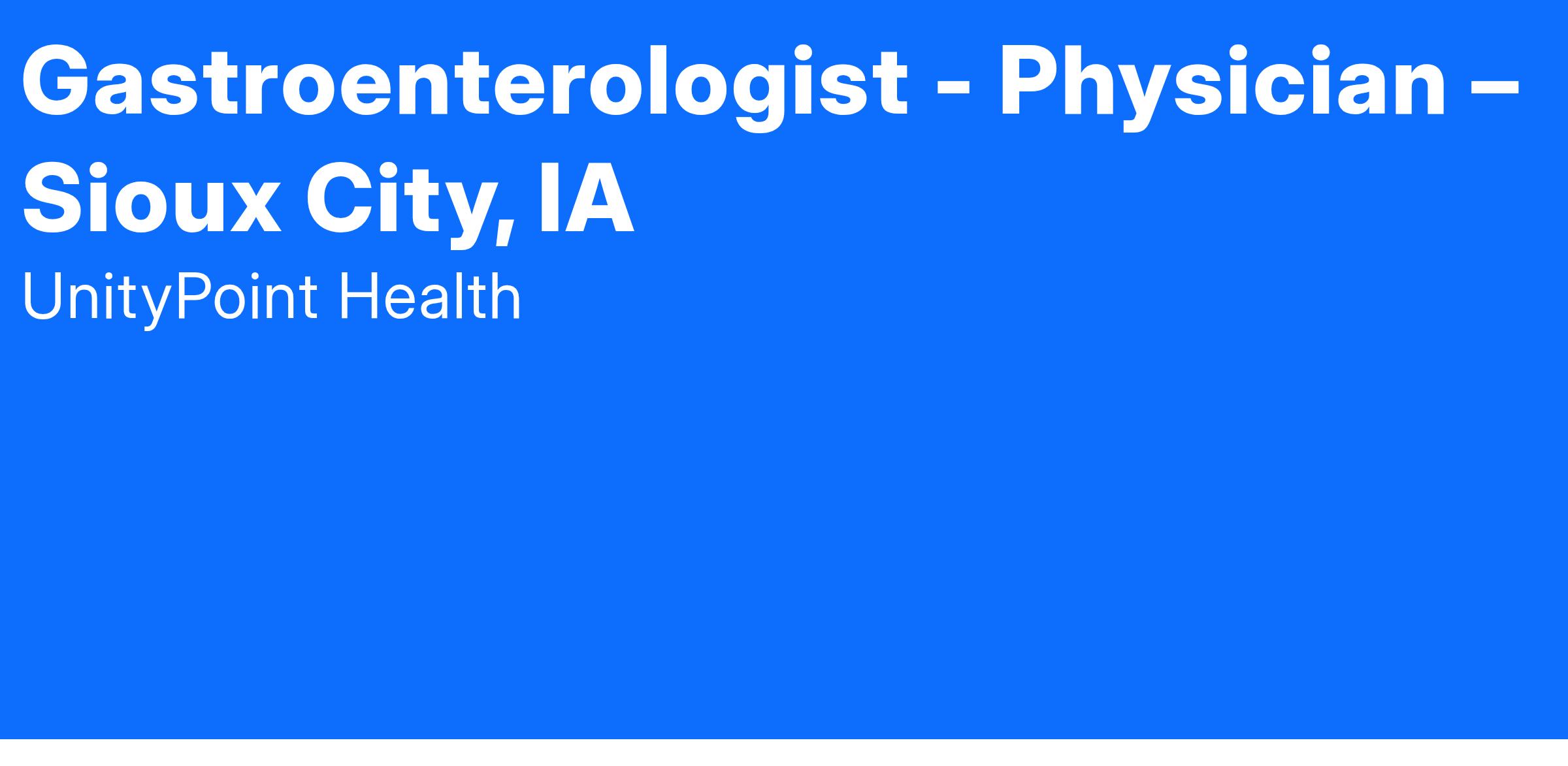 UnityPoint Clinic is actively recruiting for a Gastroenterologist - Physician to join our team in Sioux City, IA