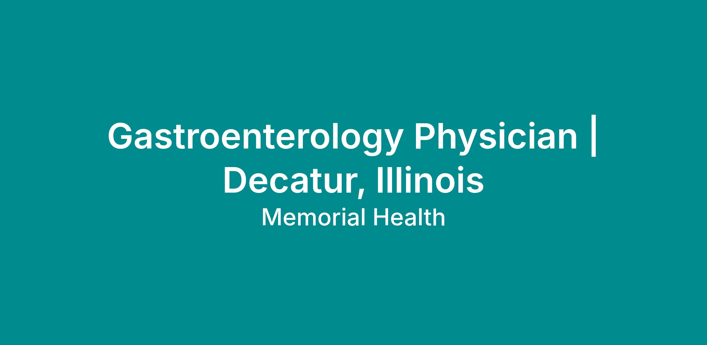 Gastroenterology opportunity with Memorial Health in Decatur. Full role details from the employer follow below.