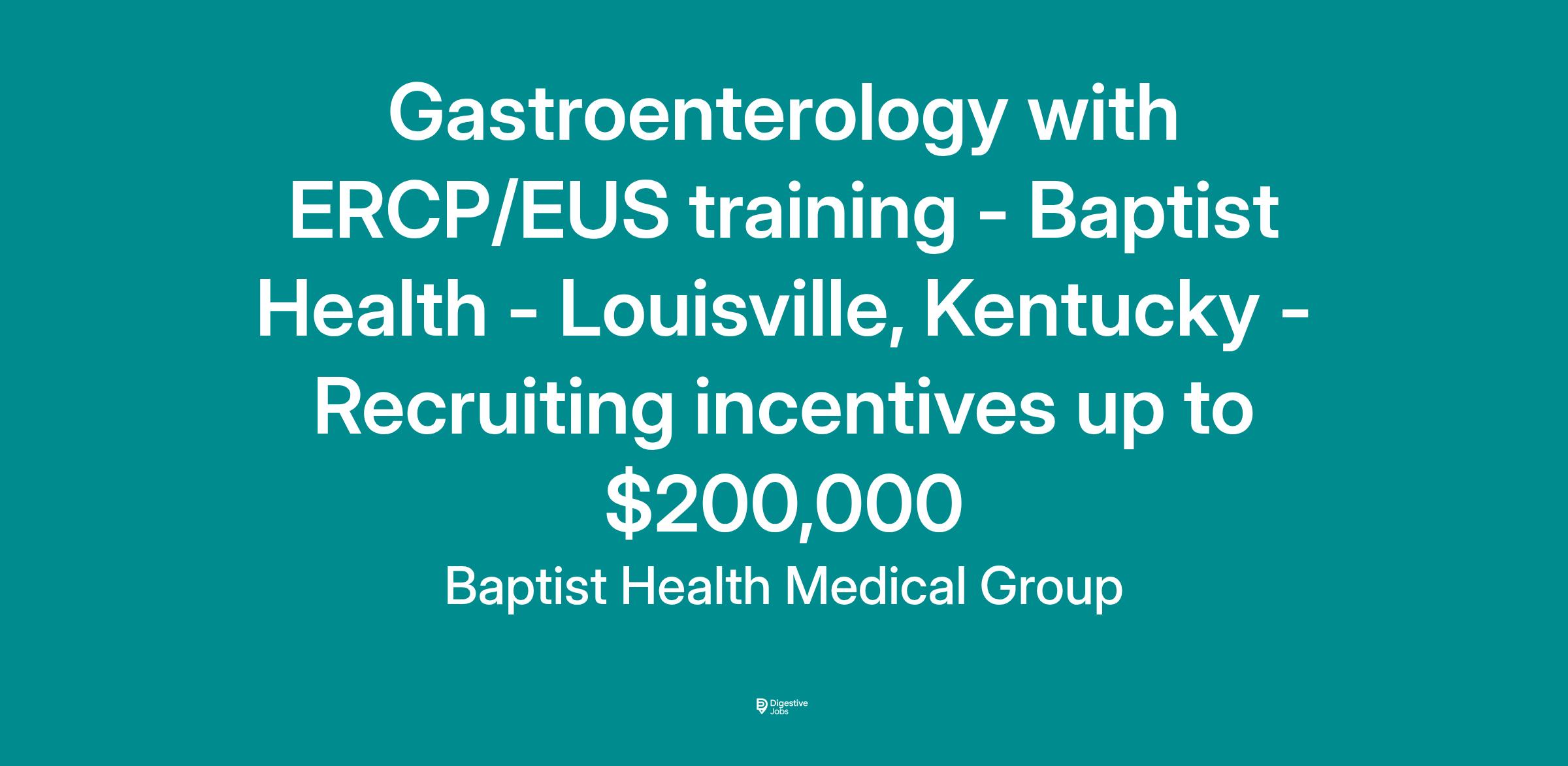 Gastroenterology with ERCP/EUS training - Baptist Health - Louisville, Kentucky - Recruiting incentives up to $200,000