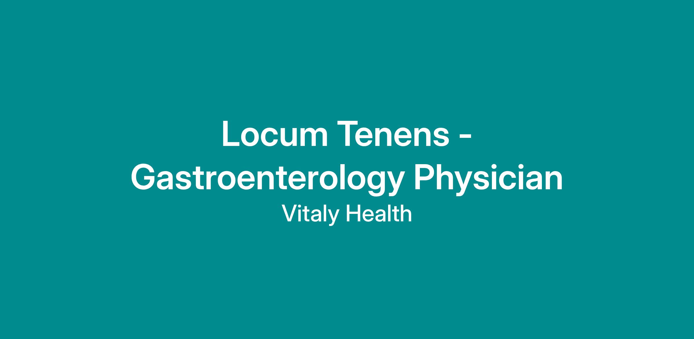 Job Title: Locum Tenens - Gastroenterology Physician
